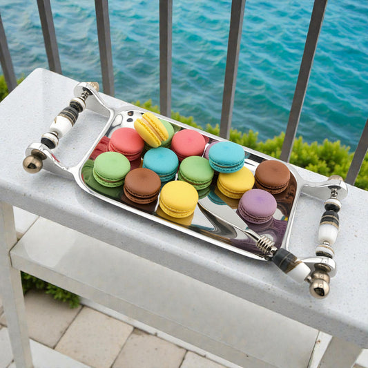 Handmade Glass Bead Serving Rectangle Tray and Appetizer Knife