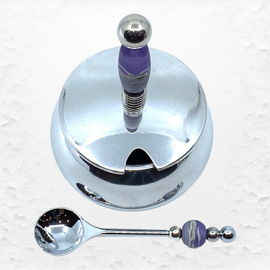 Handcrafted Glass Beaded Sugar Bowl With Spoon