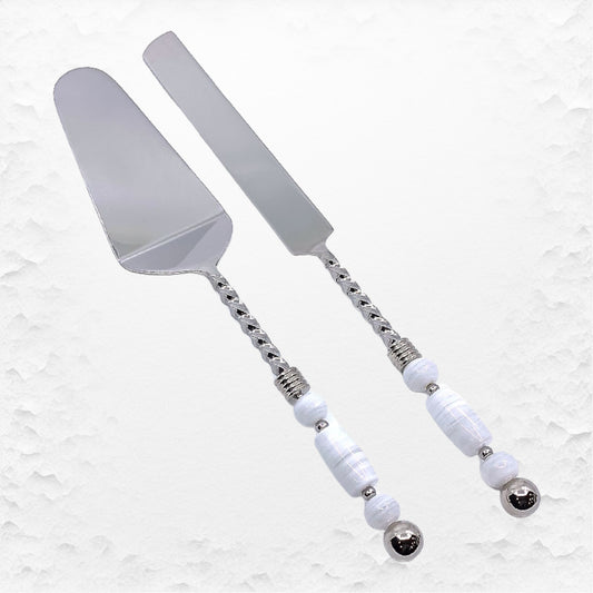 Handcrafted Glass Bead Cake Server and Knife with Twisted Handles