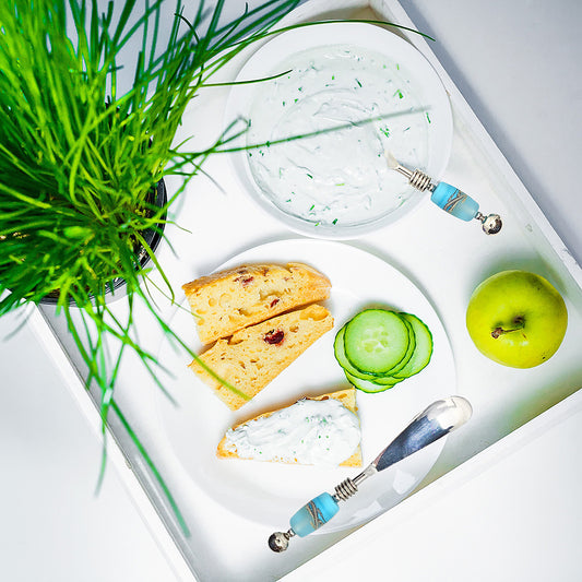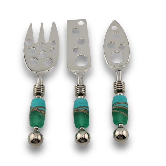 Handcrafted Glass Bead Cheese Knives with Mango Wood Cheese Wedge