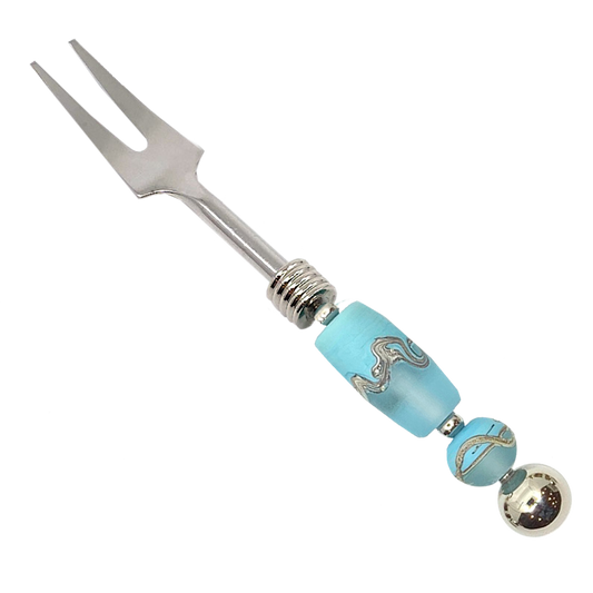 Artisan-Crafted Glass Bead Long Handle Pickle or Charcuterie Fork