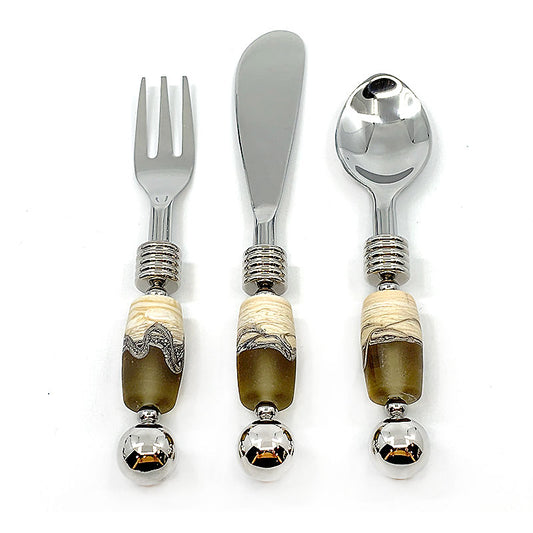 Our Artistic Glass Beaded Table Utensils are exquisite and unique dining accessories that add a touch of elegance and sophistication to your table setting. Each piece is unique, this mean it can not be produced industrially. These utensils are handcrafted with meticulous attention to detail, featuring Murano glass beads. Every bead is hand-torched to perfection. Signifying a hands-on, skillful approach to applying heat in a controlled manner, resulting in a final product that reflects precision, artistry, and attention to detail.
