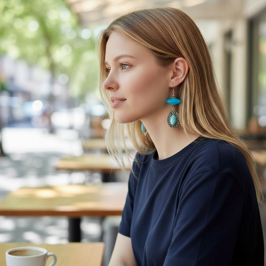 Handcrafted Glass Bead, Larimar Gemstone and Sterling Silver Earrings