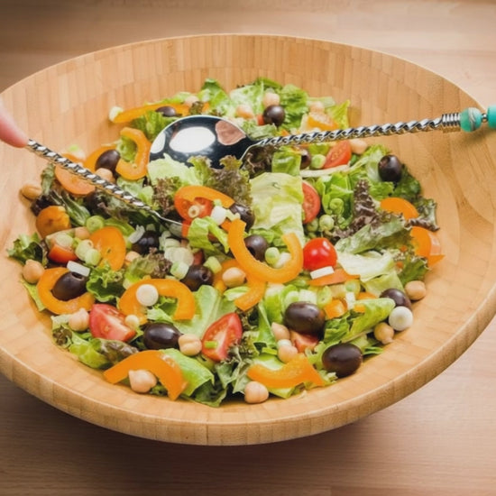 Whether you're hosting a formal dinner party or enjoying a casual meal with loved ones, these salad servers are the perfect complement to any table setting. Serve salads with style and grace, and make a statement of refined taste with our Handcrafted Glass Bead Salad Servers with Twisted Handles.